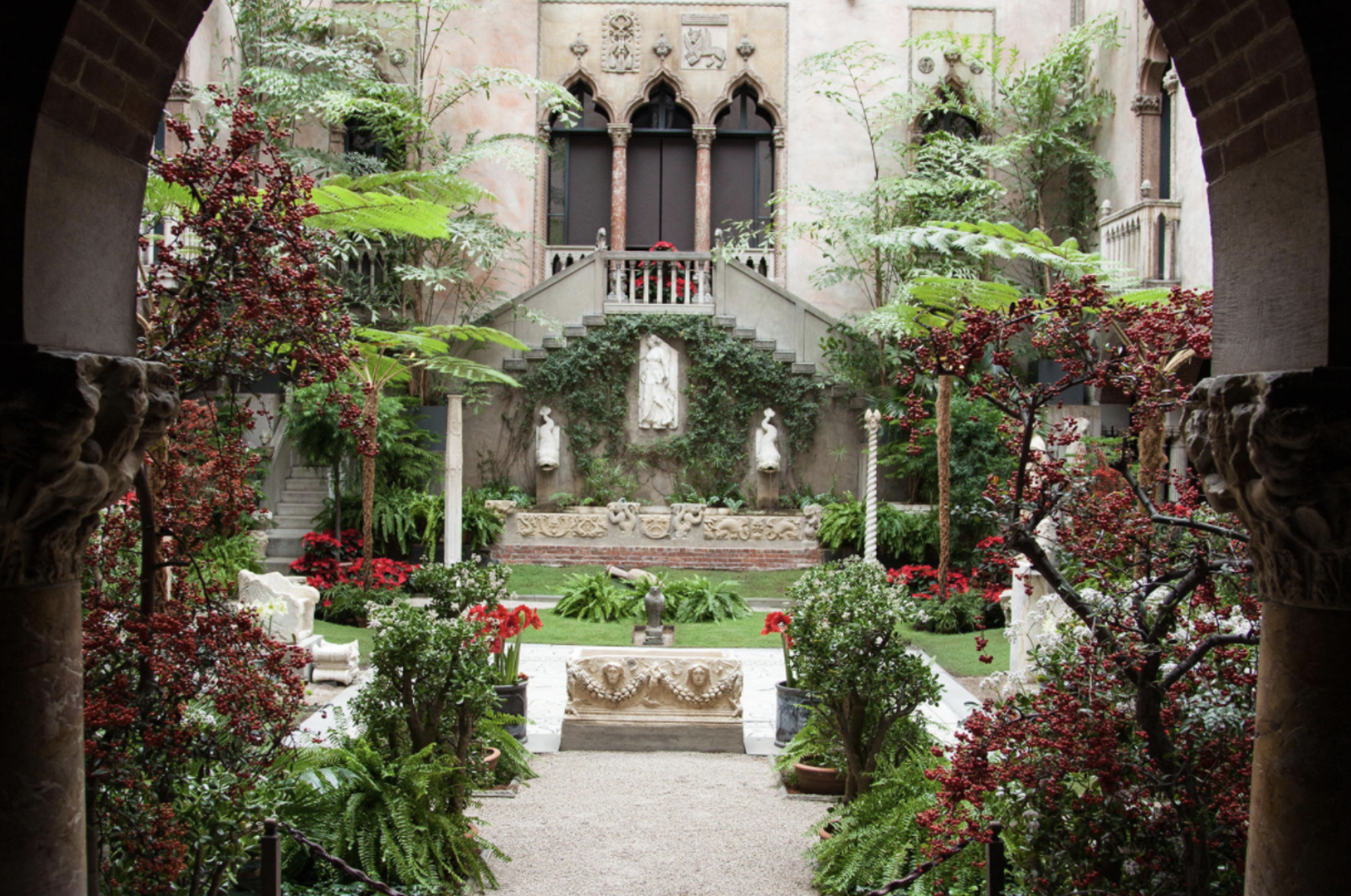 - The Gardner's Holiday Coutyard – Holidays are a special time to visit the Gardner, where the festive Courtyard features dark forest greens and shades of red and silver. This holiday tradition showcases masses of flowering jade trees, silver dusty miller, green aloe, and the dark red winter blooms of amaryllis.